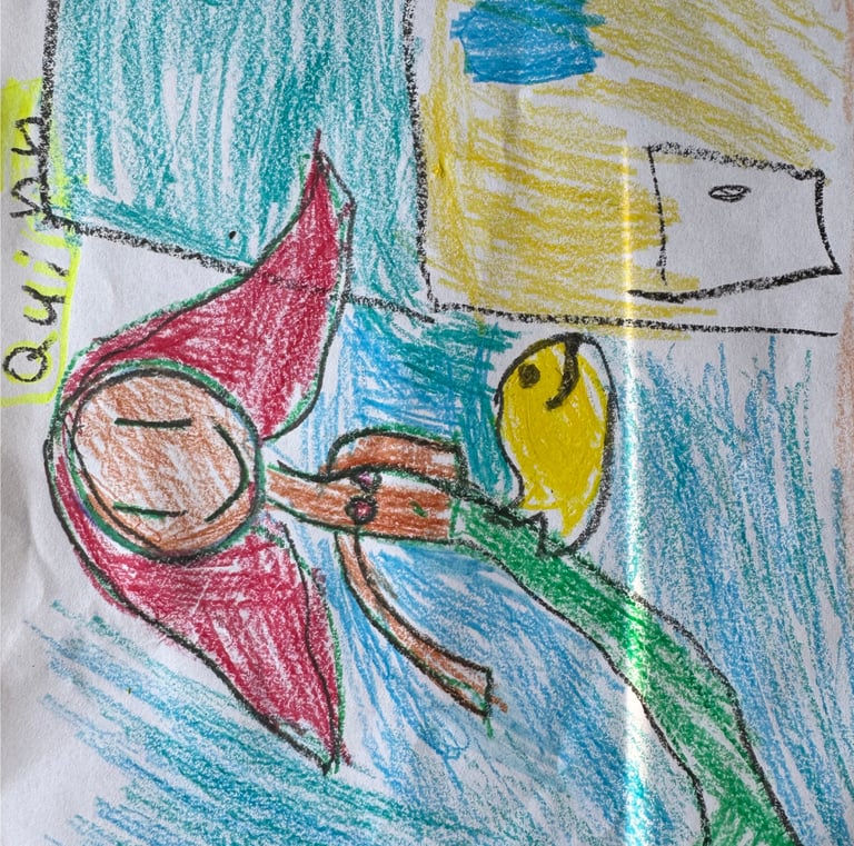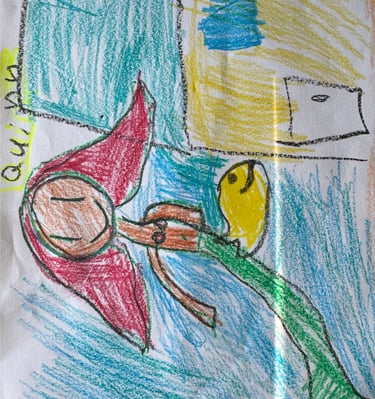 Hi! I’m Quinn. I’m 7 years old and I love to dance, draw, model, and tell big stories with color and movement.